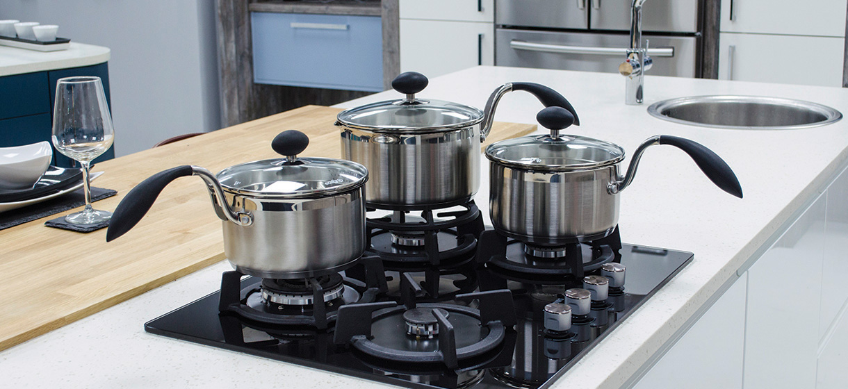 the worlds only front pouring saucepan, enables you to pour hot water away from your body safely.